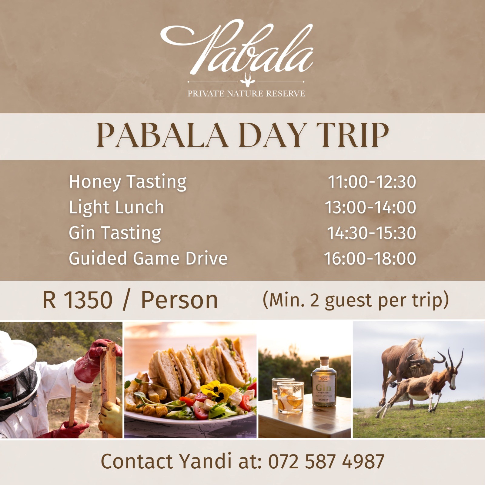 ๐ง For bookings and enquiries, contact Yandi at 072 587 4987 or email info@pabala.co.za.